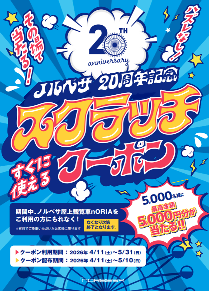 nORBESA開業20周年を記念しスクラッチクーポンキャンペーンの実施が決定いたしました!